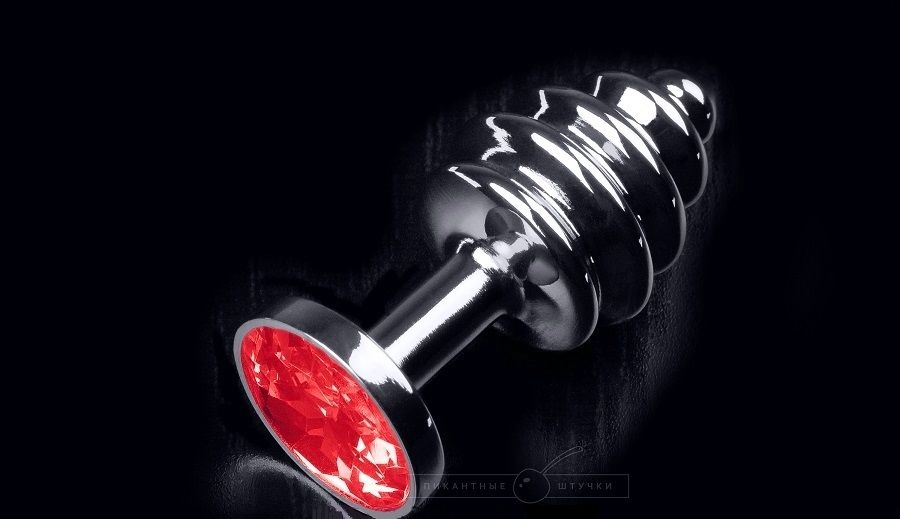 Секс шоп » Анальные игрушки » Анальная ювелирка » Маленькая витая пробка с красным кристаллом - 7,5 см.