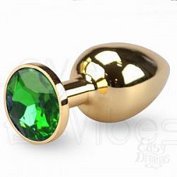 Чёрная анальная втулка с лаймовым кристаллом - 7,3 см.