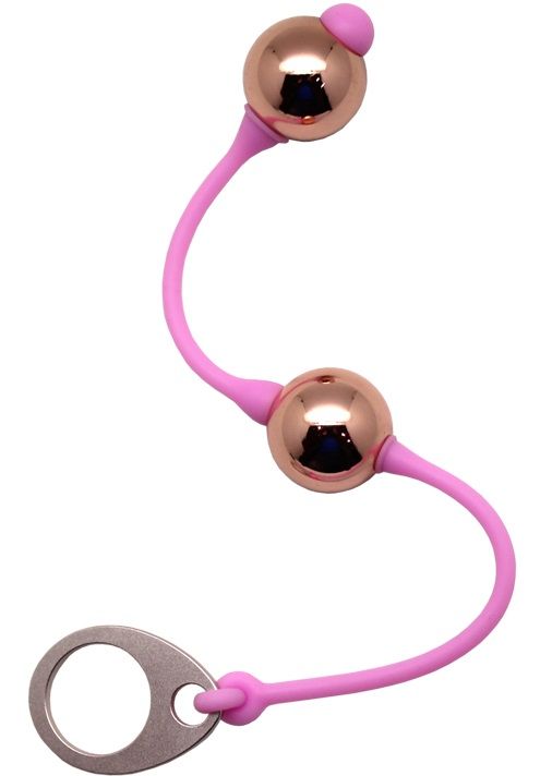 Секс шоп » Вагинальные шарики » Без вибрации » Золотистые шарики Golden Balls на розовом силиконовом шнурке