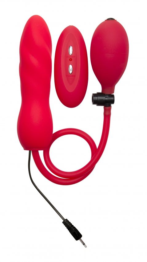 Секс шоп » Анальные игрушки » Расширяющиеся » Красный расширяющийся анальный виброплаг с грушей - 14,5 см.