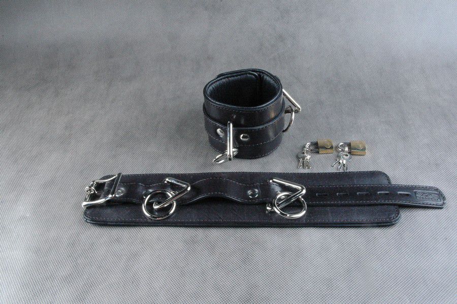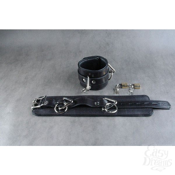 Секс шоп » БДСМ / Фетиш » Наручники / Фиксация » Оковы, поножи » Чёрные подвёрнутые наножники из кожи