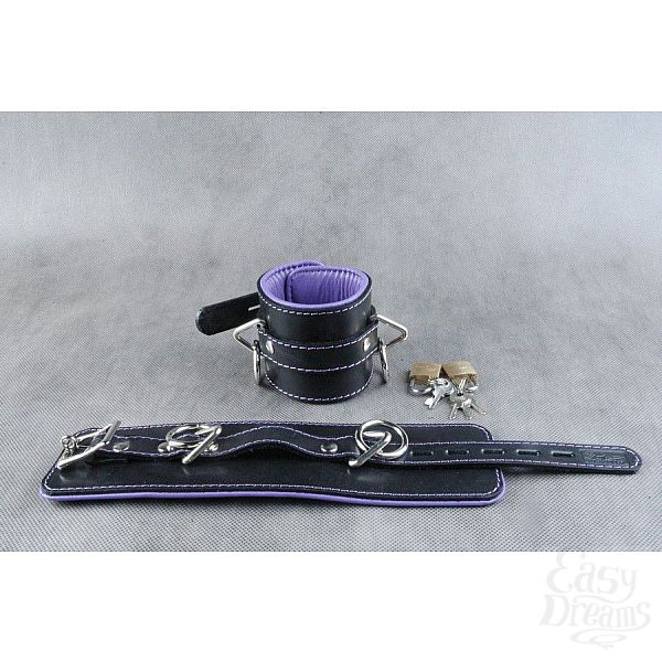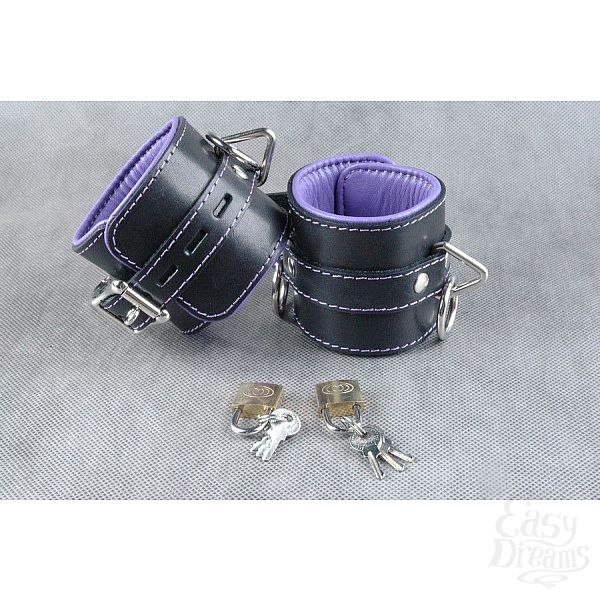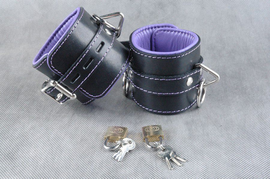 Секс шоп » БДСМ / Фетиш » Наручники / Фиксация » Оковы, поножи » Подвёрнутые кожаные наножники с фиолетовым подкладом