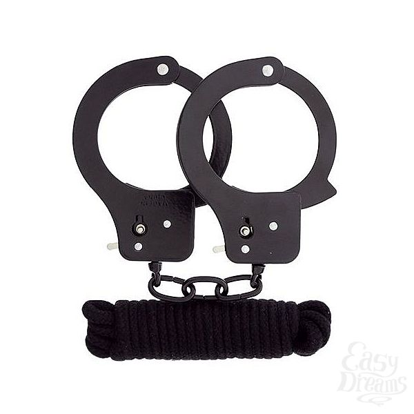 Секс шоп » БДСМ / Фетиш » Наручники / Фиксация » Наручники » Чёрные наручники из листового металла в комплекте с веревкой BONDX METAL CUFFS LOVE ROPE SET