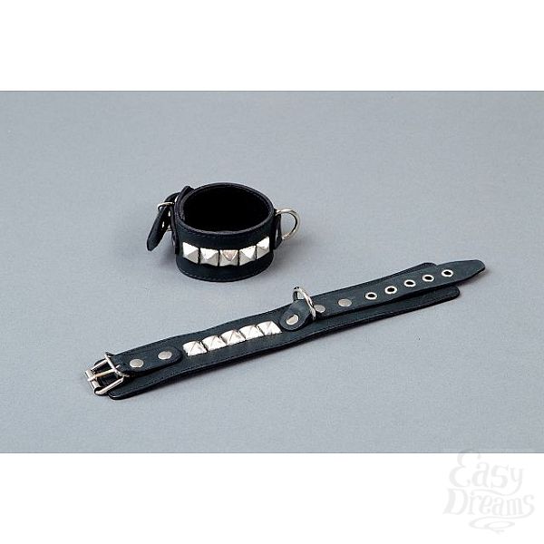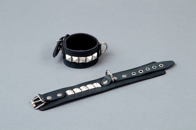 Секс шоп » БДСМ / Фетиш » Наручники / Фиксация » Наручники » Чёрные кожаные наручники с металлическими квадропуклями