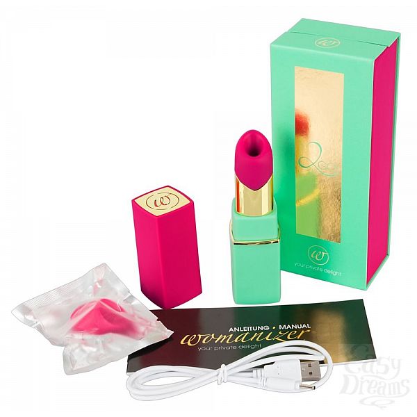 Секс шоп » Вибраторы » Элитные вибраторы » Бесконтактный стимулятор клитора в форме помады Womanizer W-260 2GO в розово-зелёном корпусе