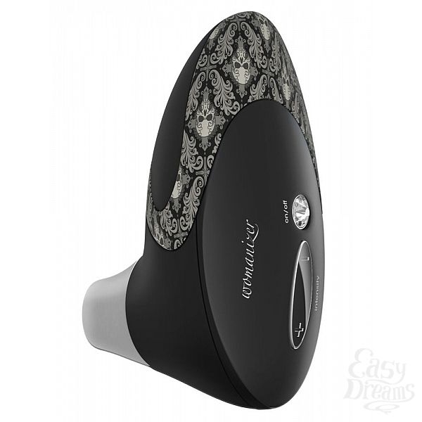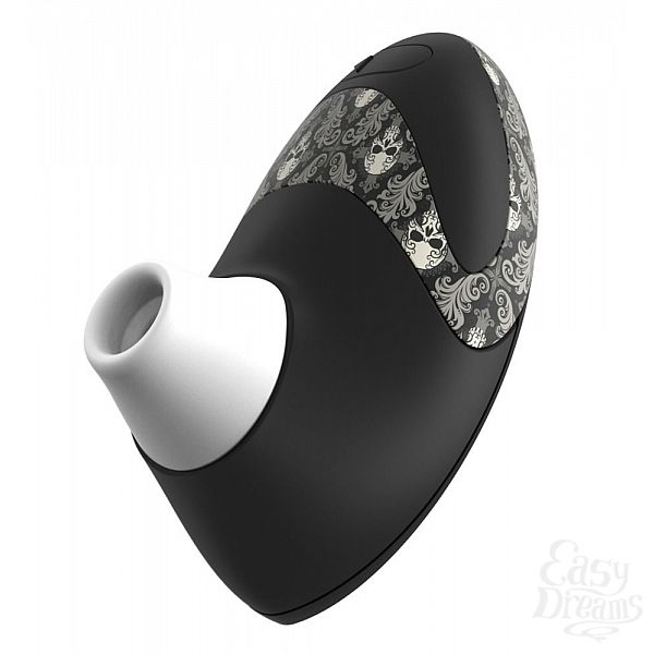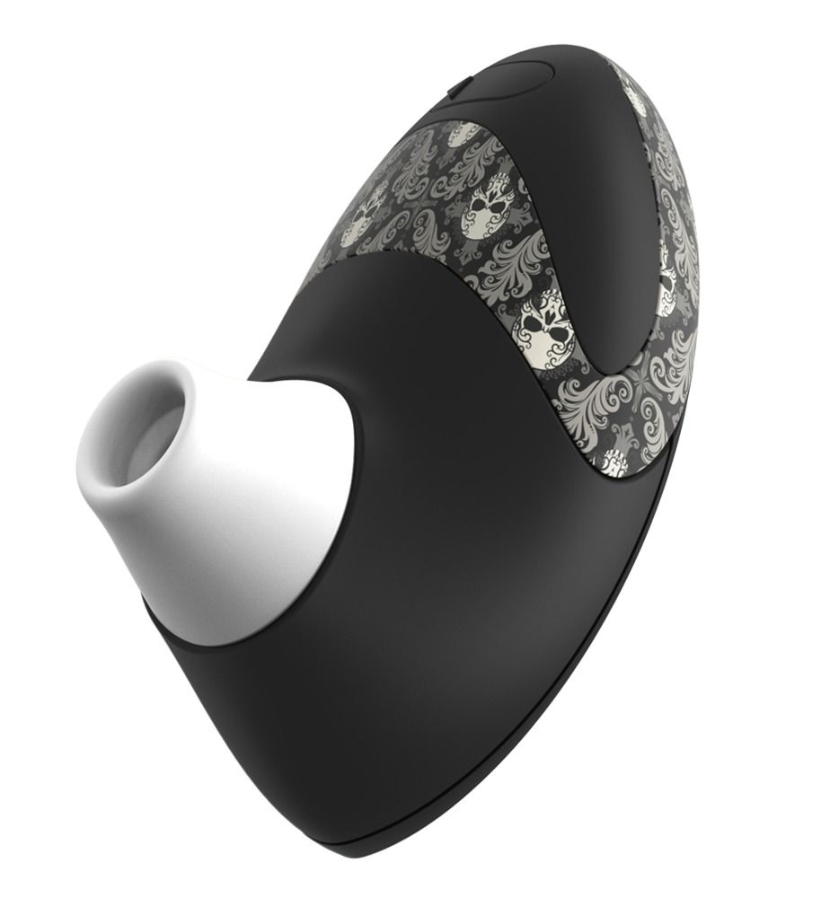Секс шоп » Вибраторы » Элитные вибраторы » Чёрный вакуумный стимулятор клитора W500 Pro с черепушками на корпусе и 2 сменными насадками