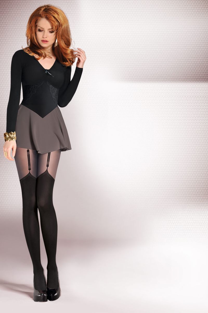 Секс шоп » Эротическое белье » Чулки/Колготки » Колготки » Черные фантазийные колготки с имитацией чулок Valery