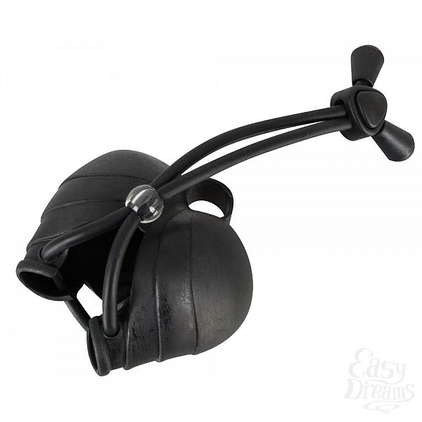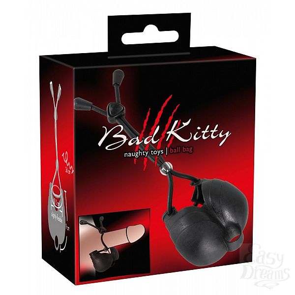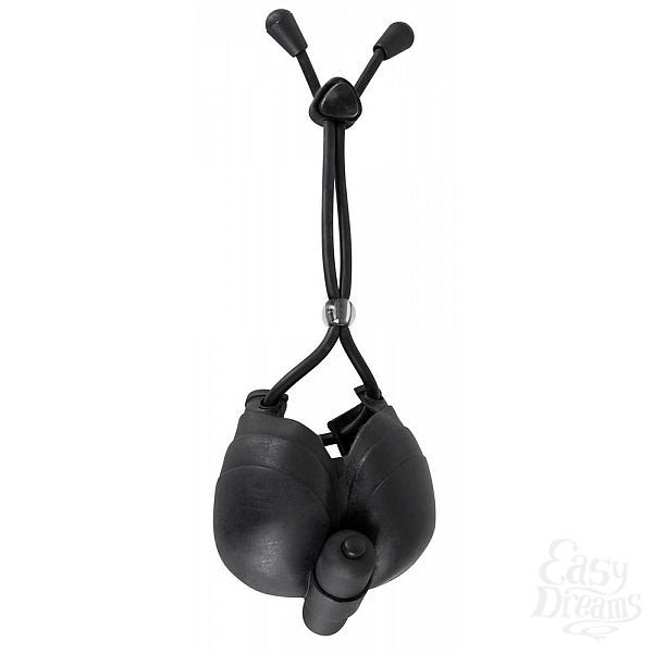 Секс шоп » Насадки / Кольца » Лассо и утяжки » Чёрное эрекционное лассо с виброподхватом мошонки Bad Kitty