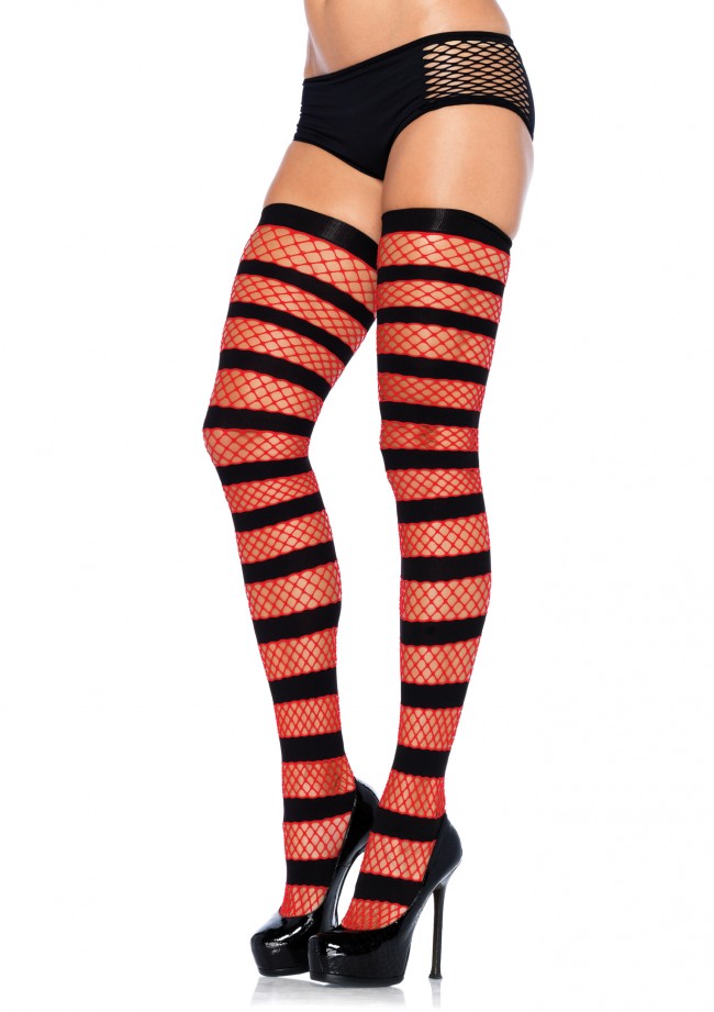 Секс шоп » Эротическое белье » Чулки/Колготки » Легинсы, гольфы, гетры » Opaque Striped Fishnet Thigh Highs Leg Avenue