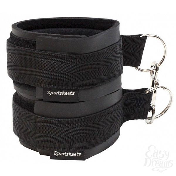 Секс шоп » БДСМ / Фетиш » Наручники / Фиксация » Напульсники, манжеты » Чёрные манжеты на запястья с соединительным карабином Sports Cuffs