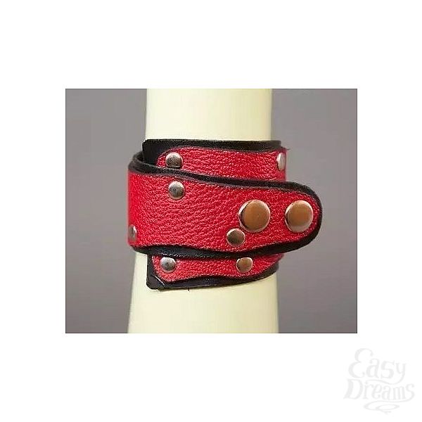 Секс шоп » БДСМ / Фетиш » Наручники / Фиксация » Напульсники, манжеты » Красно-чёрный кожаный браслет «Треугольник»
