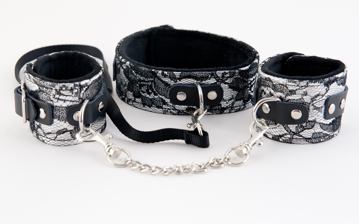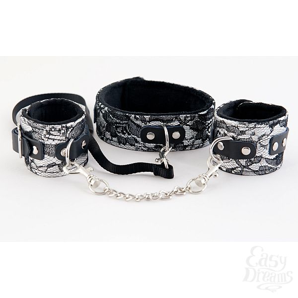 Секс шоп » БДСМ / Фетиш » Ошейники, поводки » Кружевной набор серебристого цвета: ошейник и наручники