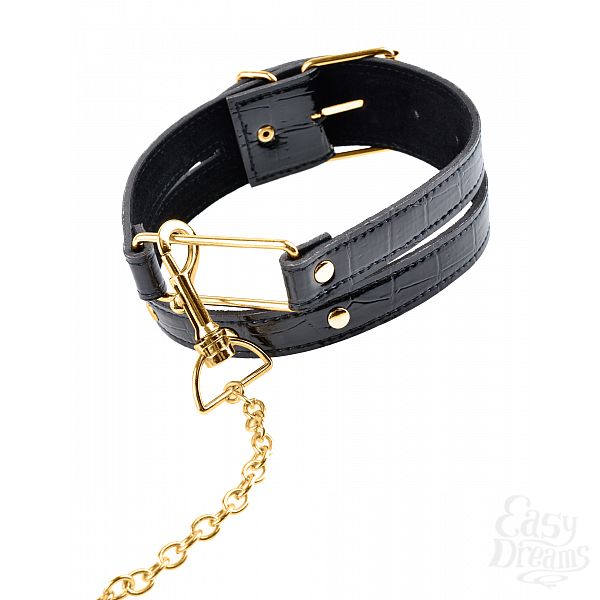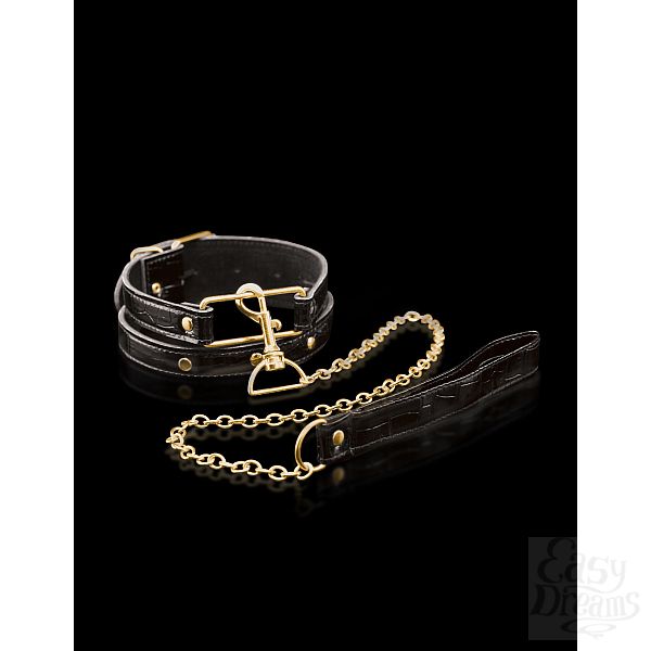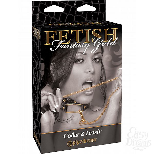 Секс шоп » БДСМ / Фетиш » Ошейники, поводки » Ошейник Fetish Fantasy Gold Collar & Leash с поводком черный с золотом