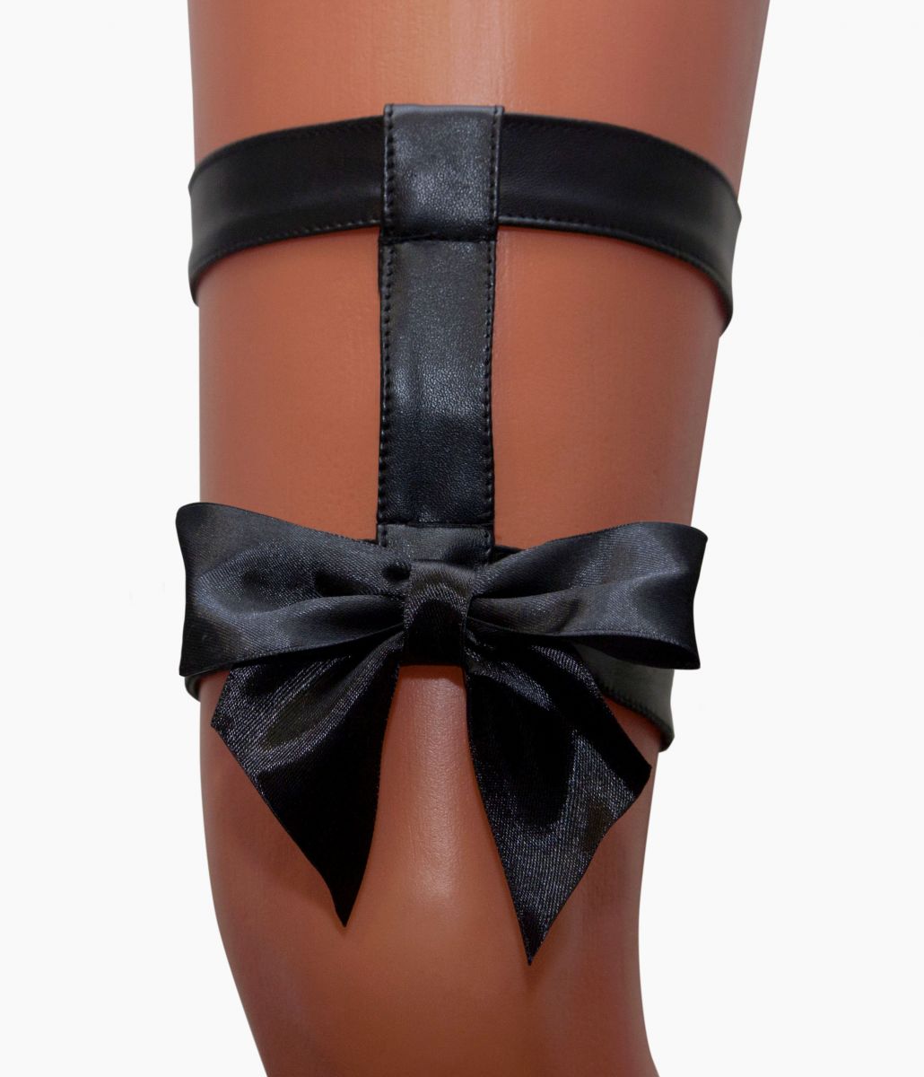 Секс шоп » Эротическое белье » Чулки/Колготки » Подвязки, пояса, аксессуары » Двойная кожаная подвязка на ногу с бантом
