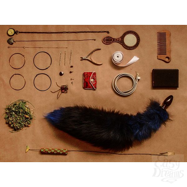 Секс шоп » Анальные игрушки » PonyPlay » Анальная пробка с натуральным лисьим хвостом - Wild Lust, 3.2 см, Синий
