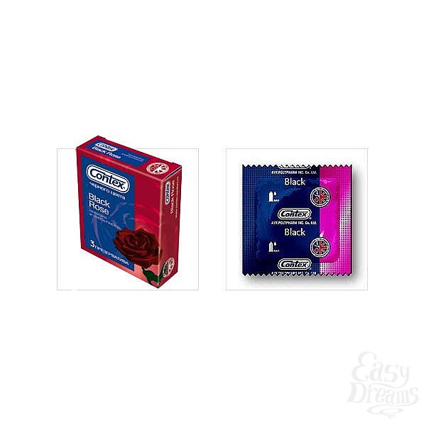 Секс шоп » Аксессуары для эротических игр » Презервативы » Презервативы черного цвета CONTEX 3 Black Rose, 3 шт.