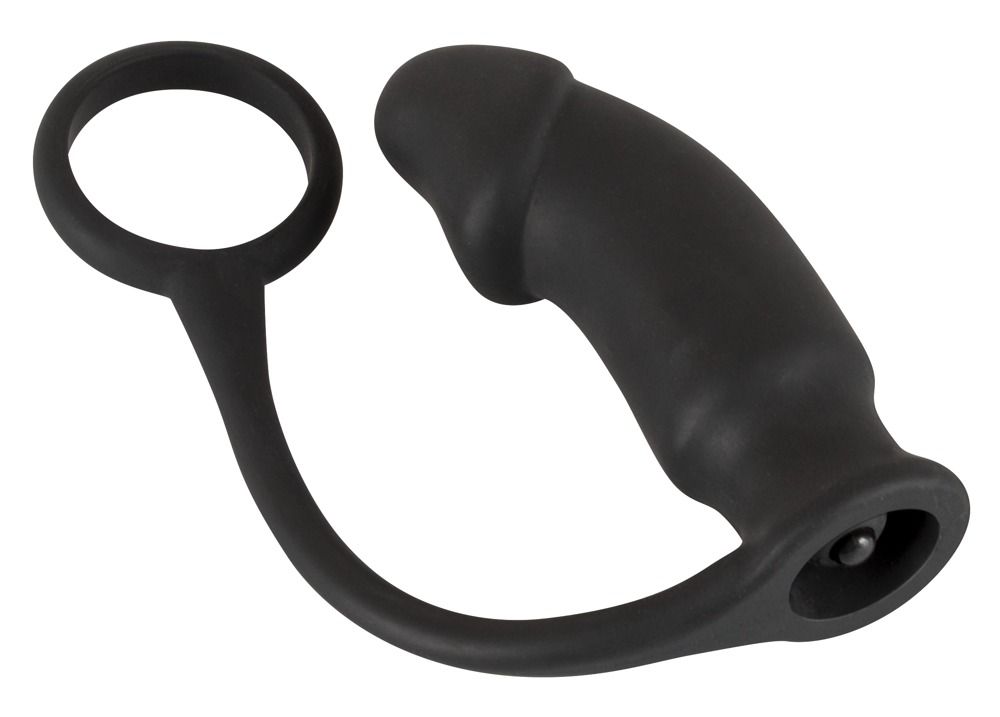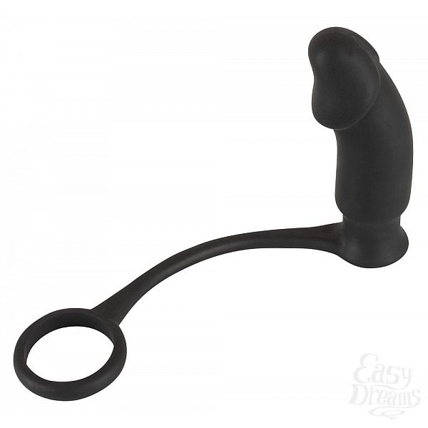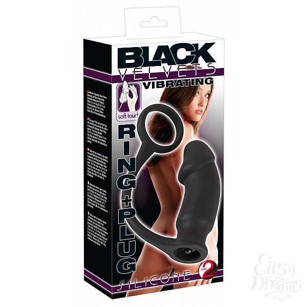 Секс шоп » Насадки / Кольца » с доп.стимуляцией » Чёрное эрекционное кольцо на пенис и мошонку с анальной вибровтулкой для усиления ощущений
