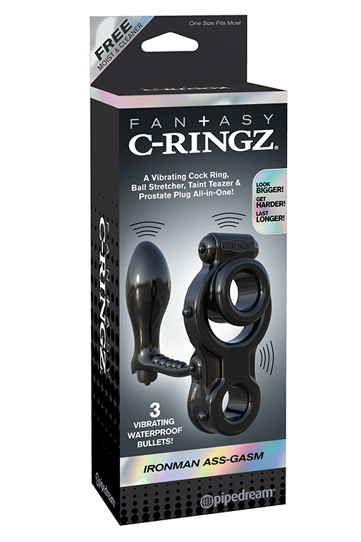 Секс шоп » Насадки / Кольца » с доп.стимуляцией » Эрекционное кольцо Ironman Ass-Gasm на пенис и мошонку с анальной стимуляцией черное с вибрацией