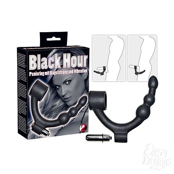 Секс шоп » Насадки / Кольца » с доп.стимуляцией » Эрекционное кольцо с вибрацией и анальным стимулятором Black Hour Penisring