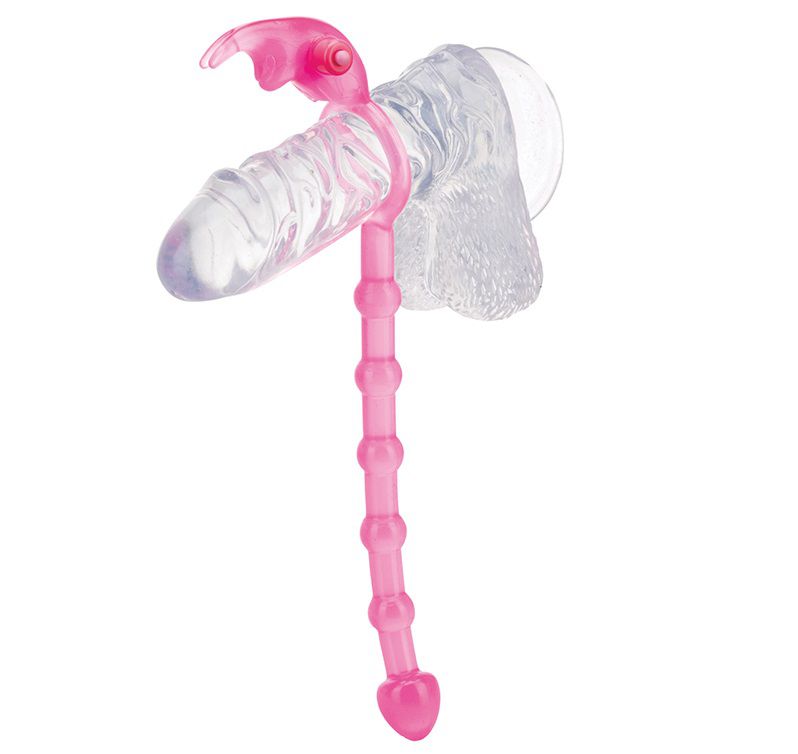 Секс шоп » Насадки / Кольца » с доп.стимуляцией » Розовое эрекционное кольцо с анальной цепочкой для него и виброзайцем для неё RAVISHING BUTT TAIL