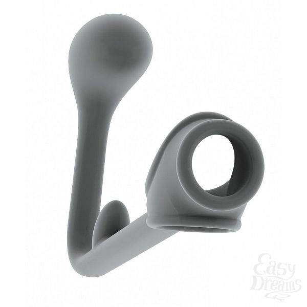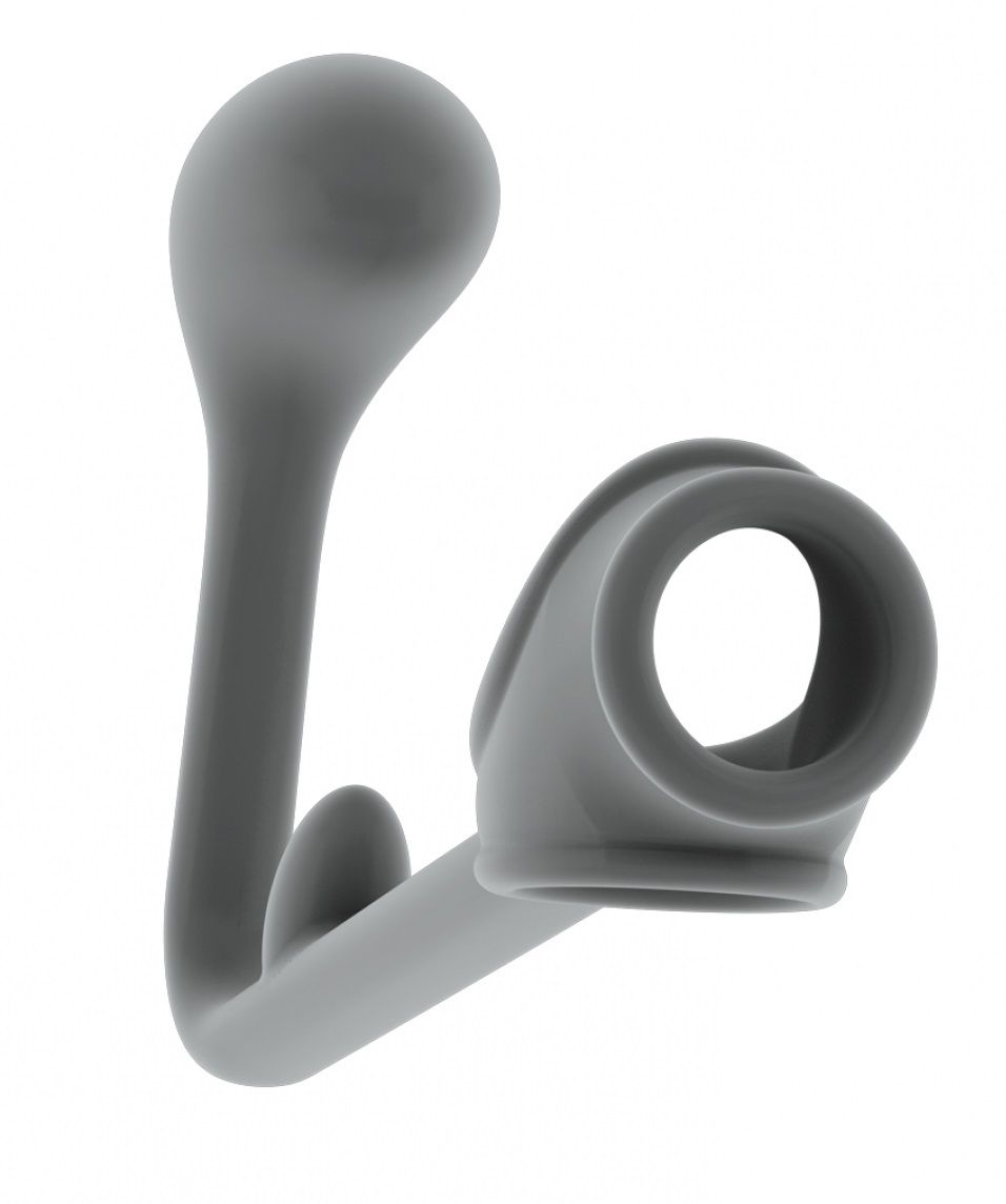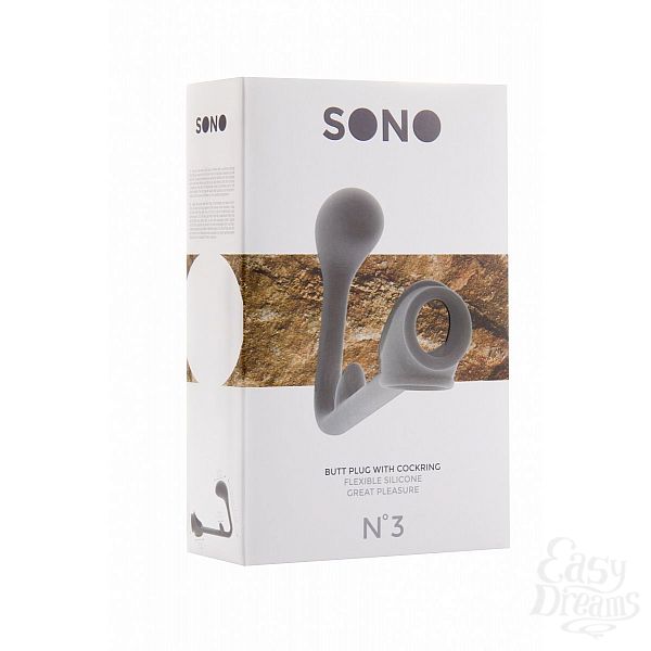 Секс шоп » Насадки / Кольца » с доп.стимуляцией » Серая анальная пробка с эрекционным кольцом SONO 3 - 11,4 см.