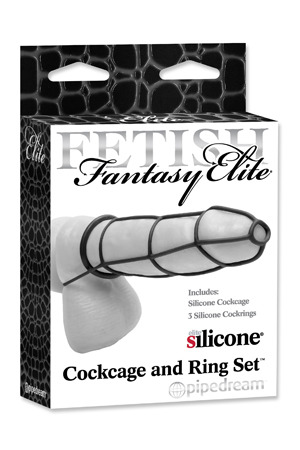 Секс шоп » БДСМ / Фетиш » Сбруи на фаллос » Набор Cockcage and Ring Set: насадка и эрекционные кольца на пенис, черный