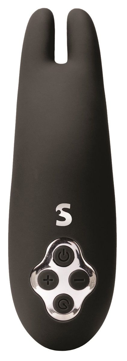 Секс шоп » Вибраторы » На клитор » Стимуляторы клитора без ремешков » Чёрный вибратор Revelation с ушками - 14,5 см.