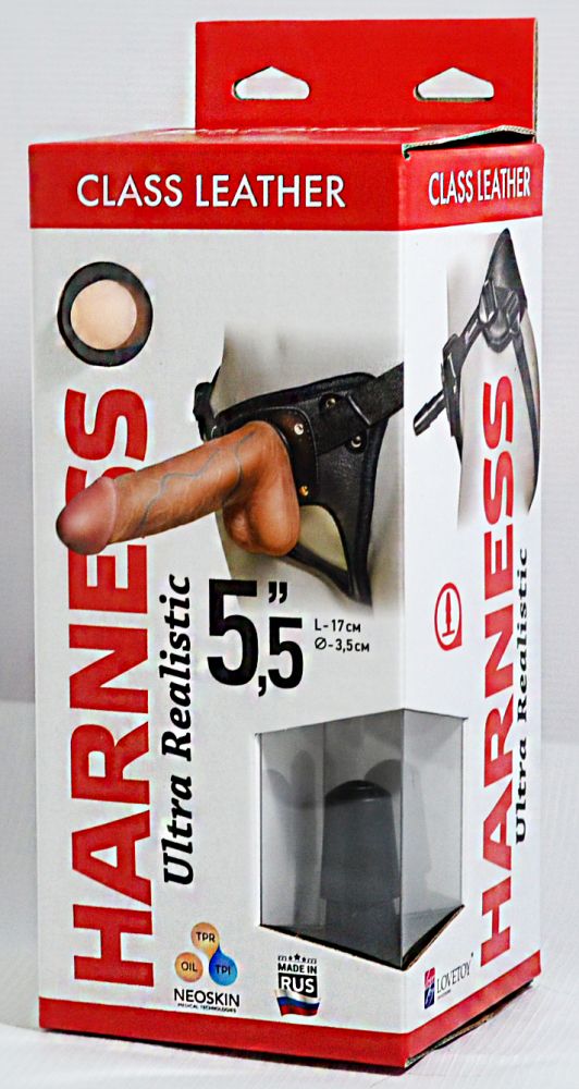 Секс шоп » Страпон » Страпоны Harness » Насадка-фаллоимитатор на кожаных трусиках Harness Ultra Realistic 5,5 - 17 см.