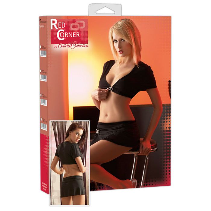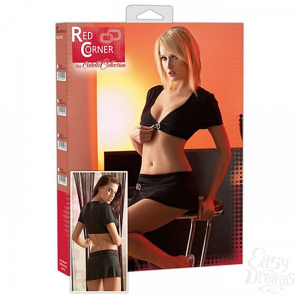 Секс шоп » Эротическое белье » Топ-маечка и трусики » Комплект из топа на застежке со стразами и миниюбки