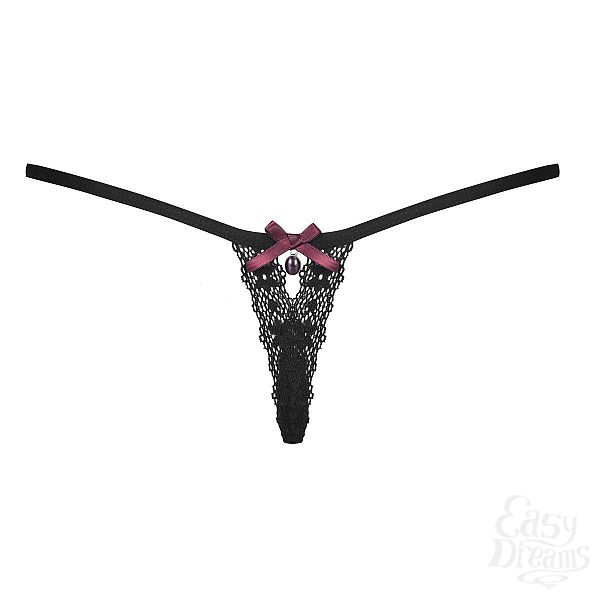 Секс шоп » Эротическое белье » Трусики » Ажурные трусики-стринги с фиолетовой подвеской и бантиком сзади