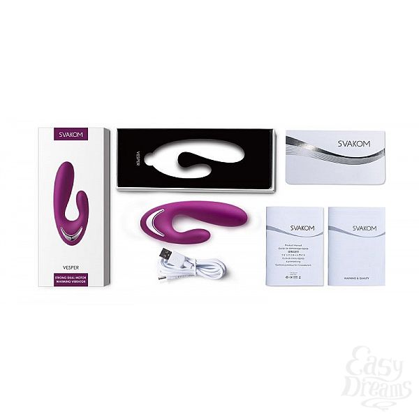 Секс шоп » Вибраторы » Вибраторы Hi-Tech » Фиолетовый вибратор Vesper с клиторальным отростком и функцией нагрева - 14,8 см.